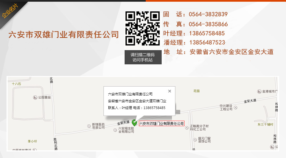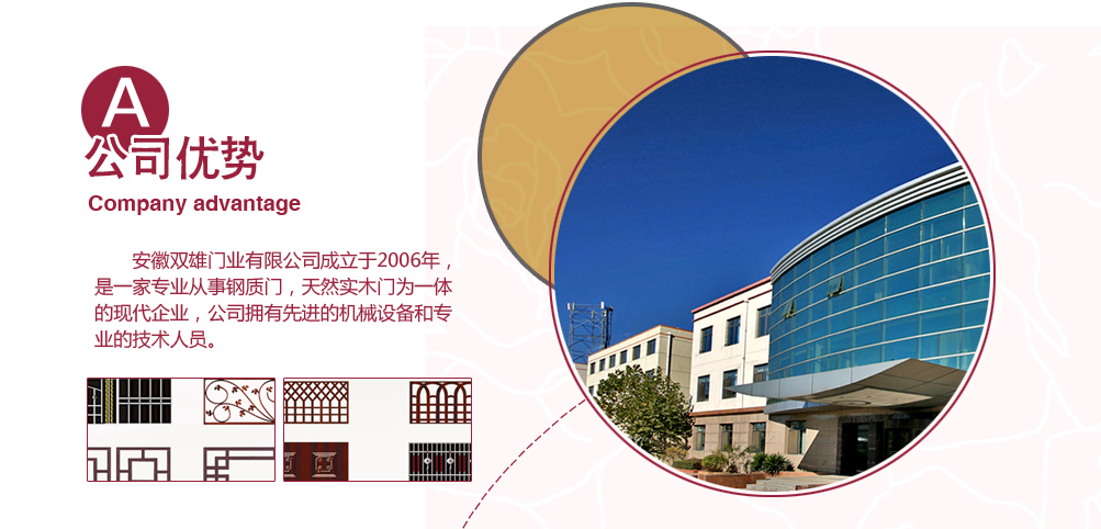 安徽六安雙雄門業(yè)有限公司成立于2006年,是一家專業(yè)從事鋼質門,天然實木門為一體的現(xiàn)代企業(yè),公司擁有先進的機械設備和專業(yè)的技術人員,以科技為依托,以市場需求為導向,大膽創(chuàng)新追求更好,全身致力于提高門業(yè)裝飾水平。公司擁有先進的機械設備和專業(yè)的技術人員,以科技為依托,以市場需求為導向,全力打造“雙雄”品牌門!產品種類繁多:金屬門(棗紅金屬門、黑底金屬門);仿銅門(紅銅門、紫銅門);真銅門(仿真銅門、真紫銅門);不銹鋼門等。公司依靠雄厚的技術力量,先進的設備,現(xiàn)代化的管理,全力打造“雙雄”品牌,以“精益求精”“服務為先”為經營理念,以“專業(yè)、誠信、熱情、周到”為服務宗旨,在消費者中已樹起良好企業(yè)形象。